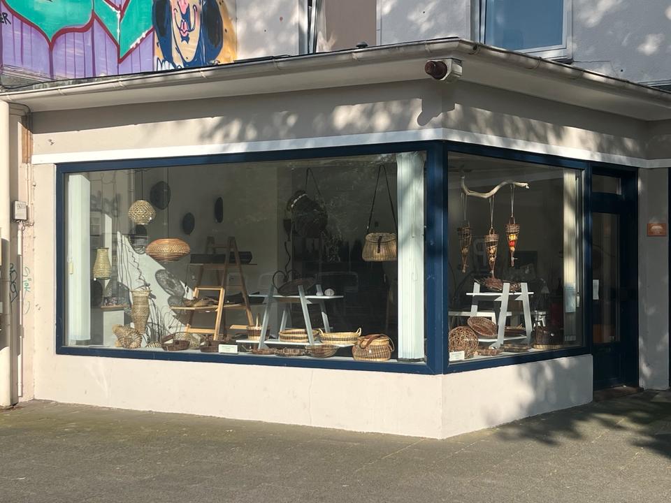Der Laden liegt in einem kleinen Mehrfamilienhaus gegenüber dem Gertrudenfriedhof.